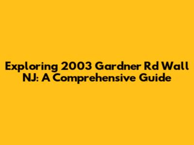 Exploring 2003 Gardner Rd Wall NJ: A Comprehensive Guide