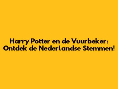 Harry Potter En De Vuurbeker: Dutch Voice Cast